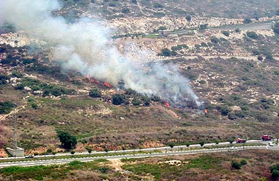 Rocket in Haifa causes brushfire (Photo: Eyal)