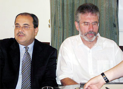 The October riots, the separation fence, and the Family Union Law – those were the topics at the center of the meeting between Deputy Speaker of the Knesset, MK Ahmad Tibi (United Arab List-Ta'al), and Gerry Adams, leader of Sinn Fein, the political arm of the Irish Republican Army.