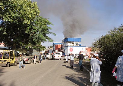 An eyewitness told Ynet: "We heard the Color Red (alert system) and then an explosion was heard. The entire factory was shaking. They told us to immediately enter the fortified rooms. One of the workers in our factory was hurt in his head. They asked us to get away from the place, because there are hazardous materials here. There is a lot of panic here."