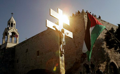 Church of the Nativity behind a Palestinian flag. Christmas 2006 (Photo: AFP)