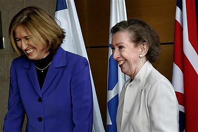 British foreign minister tells Israeli counterpart, 'Complexities of process should not deter Israel and the Palestinians from engaging in dialogue'; Livni underscores importance of keeping up pressure on Hamas until it renounces violence, recognizes Israel