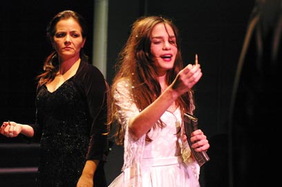 Sara von Schwarze, the Queen, with Neta Garti, Ophelia (Photo: Cameri)