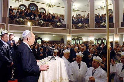 Peres visits Neveh Shalom synagogue (Photo: Moshe Milner, GPO)
