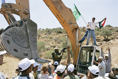Demonstrators at the scene said that protesters were able to chase away a bulldozer driver and took over his vehicle. Forces dispatched to the area promptly dispersed the demonstrators, who said the soldiers mostly targeted journalists at the site.