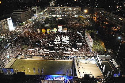 As I was walking to the Rabin Square through Gordon Street I had to pass through several security control points manned by the police and army. I heard a helicopter hovering over me. They checked my bag, which felt strange, because although I have already been here a week, I'm still not used to it.. And I am also not used to the guns. In Germany the police do not carry machine guns in public and the army is never present at such events, so the atmosphere is much less militarristic. But I do understand the neccessity for it in Israel, or at least I accept it as neccessary. I mean, I am just a foreigner here, what do I know?