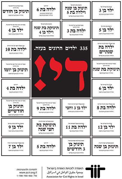 Association for Civil Rights takes out full-page, obituary-style ad in weekend newspaper 'grieving' Palestinian children killed in Gaza offensive. Ad meant to 'convey basic message of operation's impact on civilians,' says group's spokeswoman