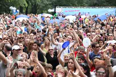 Sunday afternoon the clouds made way for summertime sunshine as thousands of Israelis and Americans arrived at the park to take part in the Frishman Beach festivities.