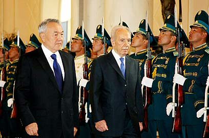 Peres arrived in Kazakhstan following a two-day visit to Azerbaijan as the head of an Israeli delegation consisting of three ministers and some 60 businessmen. The president's tour marks the first visit by a senior Israeli official to the two Muslim countries since they had established diplomatic ties with the Jewish state.