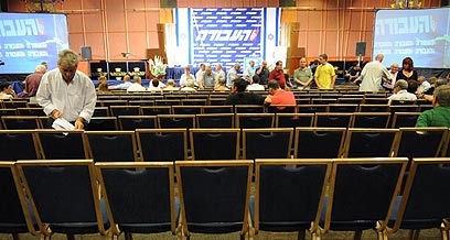 Chairman tells party convention, 'We plan on winning the next elections with will power.' After intense negotiations with Histadrut head's mediation, party heads agree next primaries in October 2012