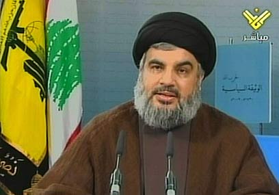 Hezbollah Secretary-General Hassan Nasrallah laid out his political platform Monday during a speech filmed by closed-circuit cameras. The platform promotes armed battle against Israel and the US, as well as all of the latter's protectorates.