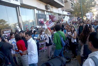 Knesset Member Ronit Tirosh, who initiated a bill prohibiting the import, trade or manufacturing of fur or textiles that include fur from anywhere in the world, also took part in the demonstration.