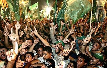 Tens of thousands attend huge Hamas celebration in Gaza Strip; group leader al-Zahar vows to continue ‘liberation journey until Islam’s flag is raised over Jerusalem,’ says Hamas would never agree to disarm. 'Zionist enemy only understands language of force,' he says
