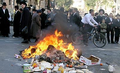 Jerusalem’s Sabbath Square was closed to traffic after hundreds of haredim gathered at there and began setting fire to garbage cans. The protesters blocked the road and threw stones at passing cars.