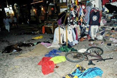 A man staying at tourist resort near the site of the attacks told Ynet "people were flying in the air" after the three explosions rocked the area and added the bombings targeted a small compound consisting of three businesses, which were completely destroyed.