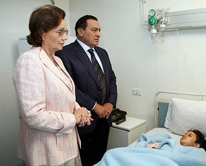 Mubarak and his wife visiting the injured (Photo: Reuters)