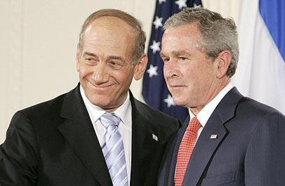 All smiles. Bush and Olmert at the White House (Photo: AP)