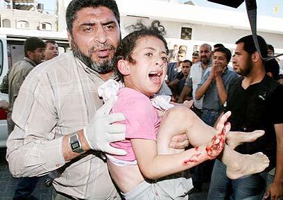 Seven Palestinian civilians were killed and dozens were injured when artillery shells fired by the Israel Defense Forces exploded on a beach north of the Gaza Strip on Friday, Palestinian Health Minister Basem Naim said.