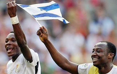 Pantsil, who plays for Israeli club Hapoel Tel Aviv, celebrated the two goals in Ghana's 2-0 win over the Czech Republic by pulling an Israeli flag out of his sock and waving it at the cameras.