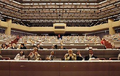Then the conference passed by a 237-54 vote a resolution setting up the legal basis for Israelis' admission and making an exception to the rule that societies have to be under a sovereign state so that the Palestinians could join as well.