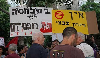 Rally in Tel Aviv. 'No to brutal bombardments' (Photo: Eli Elgarat)