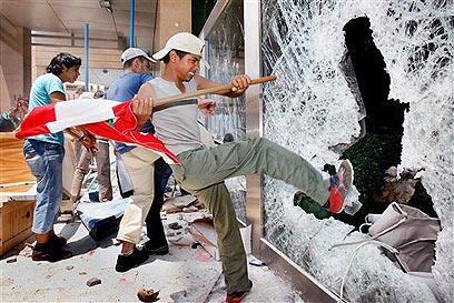 In Beirut, a demonstration of hundreds of civilians condemning the massacre Israel carried out and the Arab regimes that stand idly by is being held. The demonstrators, carrying flags of Hizbullah, are attacking UN representatives, are destroying property in the UN building, and are calling out in favor of Hizbullah and its leader. Even Rice received a barrage of juicy insults hurled by the protestors, who warned her not to dare come to Lebanon. The demonstrators called upon Hizbullah to take revenge on Israel for the event and swore their loyalty to Nasrallah. Hizbullah representatives spoke before the crowd. As of now, a large number of security forces is acting to disperse the crowd.