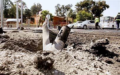 Rocket landing site in Kiryat Shmona (Photo: AP)