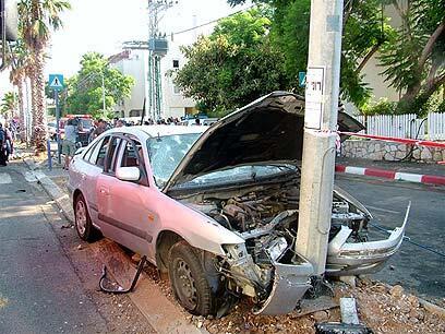 Car damaged during rocket attack on Akko (Photo: Ahiya Raved)