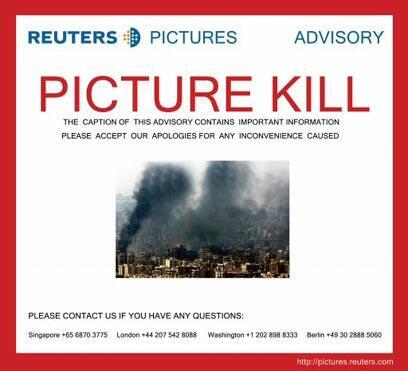 The photograph showed two very heavy plumes of black smoke billowing from buildings in Beirut after an Air Force attack on the Lebanese capital. Reuters has since withdrawn the photograph from its website, along a message admitting that the image was distorted, and an apology to editors.