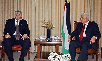 On the way to a Palestinian national unity government: Palestinian Prime Minister Ismail Haniyeh and Palestinian President Mahmoud Abbas agreed Wednesday afternoon on the establishment of a Palestinian national unity government. At the end of their second meeting in the past day, the last disagreements were smoothed over on the way to configuring a government, which was summarized between the Palestinian factions in the Prisoners' Document presentedtwo months ago.