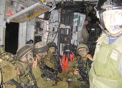 We took off an hour and a half behind schedule. "We're terribly late," I'm told by Omer, a young paratroop career officer who left his university studies and asked to join his friends. "The moon will be rising in four minutes and it will expose us." He's worried.