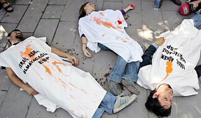 Unions, professional groups protest in Ankara against gov’t decision to send troops to Lebanon; police detain five members of leftist association who chain themselves to gates of military compound opposite parliament; leftists wear bloody shrouds in demonstration near prime minister’s office