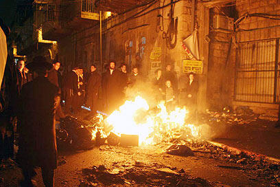 Earlier, about 100 haredim blocked parts of the Shabbat Square in Jerusalem. They burned garbage bins and blocked a road.