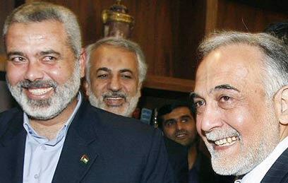 Haniyeh (L) with Iranian Vice President Parviz Davoodi (Photo: Reuters)