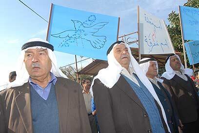 During the protest, which included women and children, the protesters held signs in Arabic and Hebrew, and posters with doves on them.