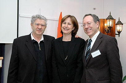 Aharon Barak with Prof. Yafa Zilbershatz, dean of the Faculty of Law at Bar-Ilan and former Canadian Minister of Justice Irwin Cotler (Photo: Meshulam Levi)
