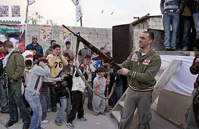 The six were apparently injured by shots that were fired into the air during the funeral. However, Fatah officials are claiming that Hamas members of the special security force of the Palestinian Authority shot at the people.