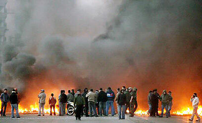 Black smoke billowed over Beirut as demonstrators shut main roads, including those to the port and international airport, to enforce a general strike called by Hizbullah and its allies.