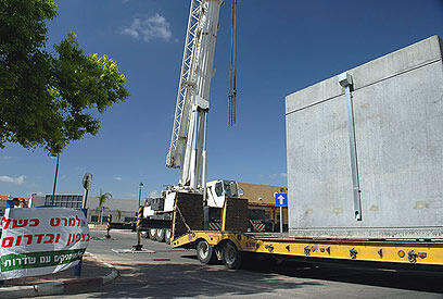A delivery of 15 mobile fortified stalls was spread on major streets in Sderot as part of the government's efforts to provide shelter to residents in the southern city from rockets fired from the Gaza Strip.