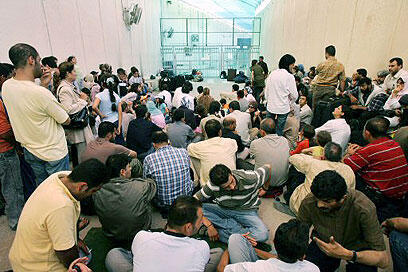 Hundreds of Palestinians wait to leave Strip (Photo: AFP)