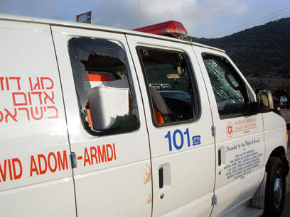 Ambulance's windows shattered (Photo: MDA spokesperson)