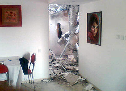 The apartment hit by the rocket belongs to a senior officer serving in the Gaza Division, Ynet has learned. The officer, who took part in Operation Warm Winter in Gaza, heard about his house being hit by a Grad rocket, and returned to Ashkelon to observe the damage.