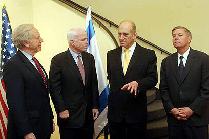 VIDEO - Prime Minister Ehud Olmert metvisiting US Senators Joe Lieberman and Lindsey Graham as well as presumptive US Republican nominee for President John McCain on Wednesday. The prime minister conveyed to the American officials his impressions that the current lull in violence in the south was only temporary.