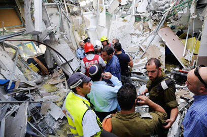 The rocket crashed into a women's health clinic on the second floor of a busy shopping mall in central Ashkelon just before 6:00 pm, wounding 15 people and burying several shoppers under piles of rubble.