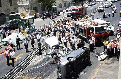 Jerusalem Police Chief Aharon Franco told Channel 2 "a tractor driven by a terrorist began hitting vehicles and flipped over two buses. Apparently there are casualties at the scene; we don’t have an exact number as of yet. We received no prior warning of a possible attack."