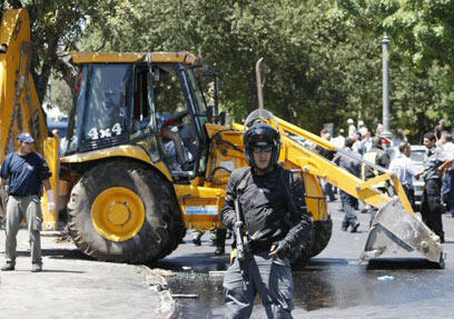 Dina, who works near the scene of the incident, told Ynet, "There are a lot of ambulances and police cars here. We heard three or four shots fired at the bulldozer driver."