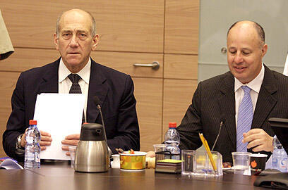 Olmert at with committee chair MK Tzachi Hanegbi (Photo: Dudi Vaaknin)