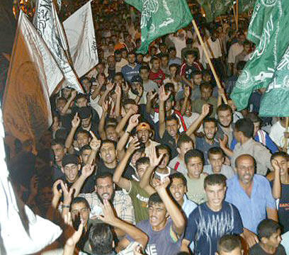 In a small sign of defiance, a group of Hilles children went outdoors wrapped in yellow Fatah flags, saying they hoped the sight would annoy Hamas troops patrolling the neighborhood on foot and in pickup trucks.
