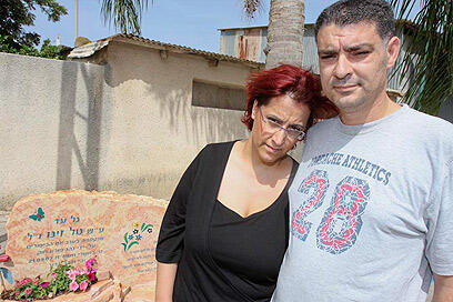 Yehiel and Chaya by the monument erected for Tal (Photo: Hagai Aharon)