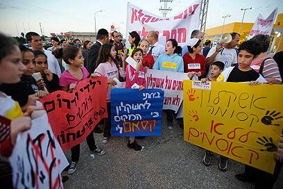 Ashkelon children carry signs of protest (Photo: Amir Cohen)