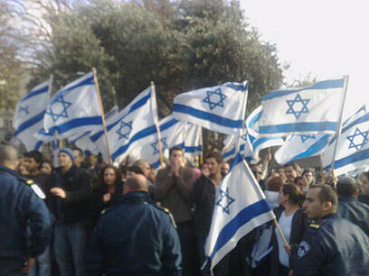 Objectors to the operation carried the Palestinian flag and called out, "Gaza, Gaza, don't despair, we will put an end to the occupation", "God is great", and "In spirit and in blood we will save Palestine".